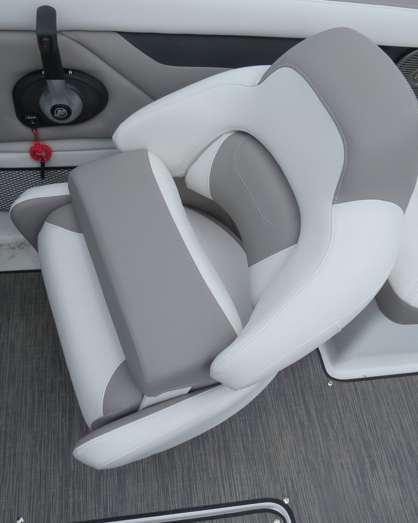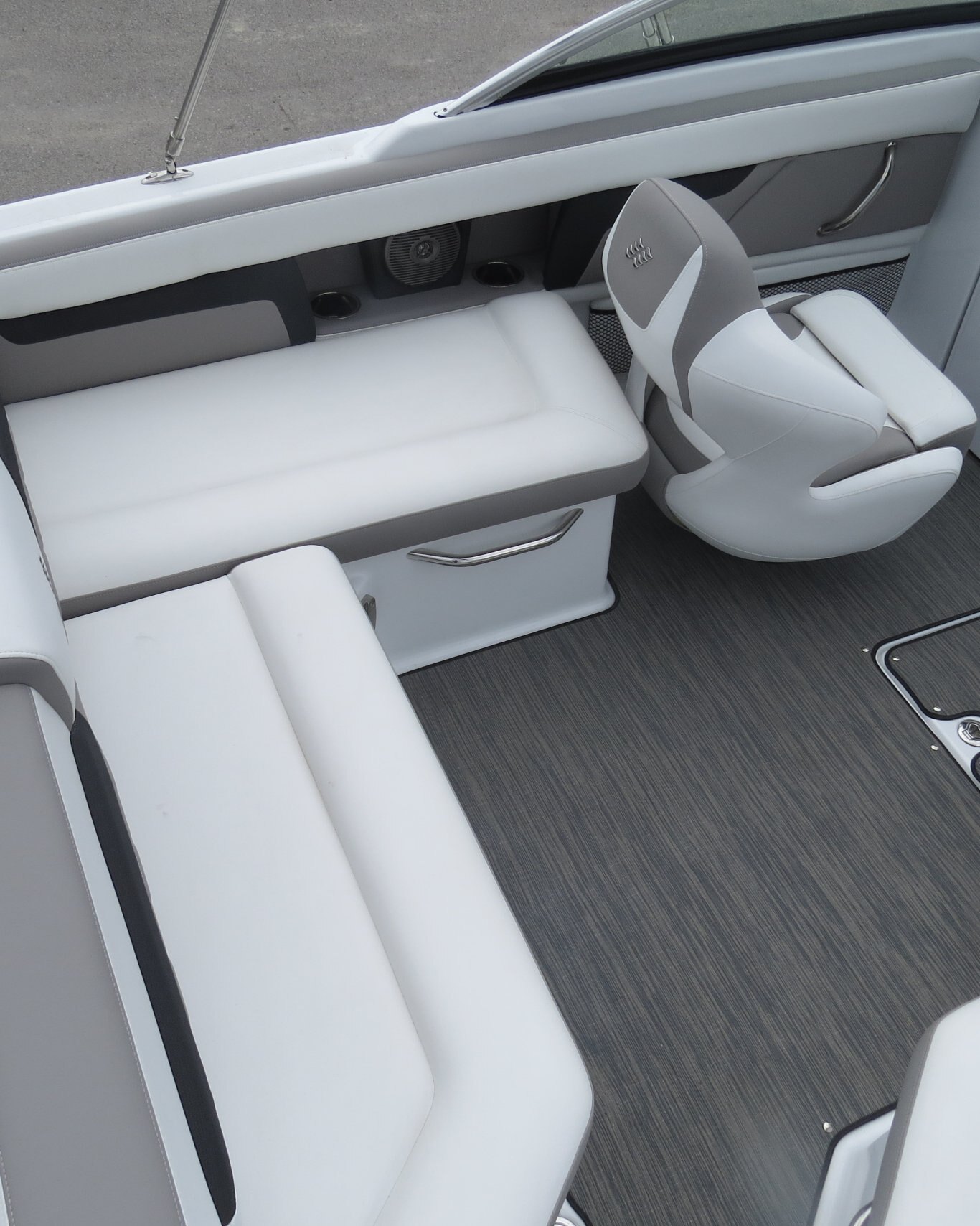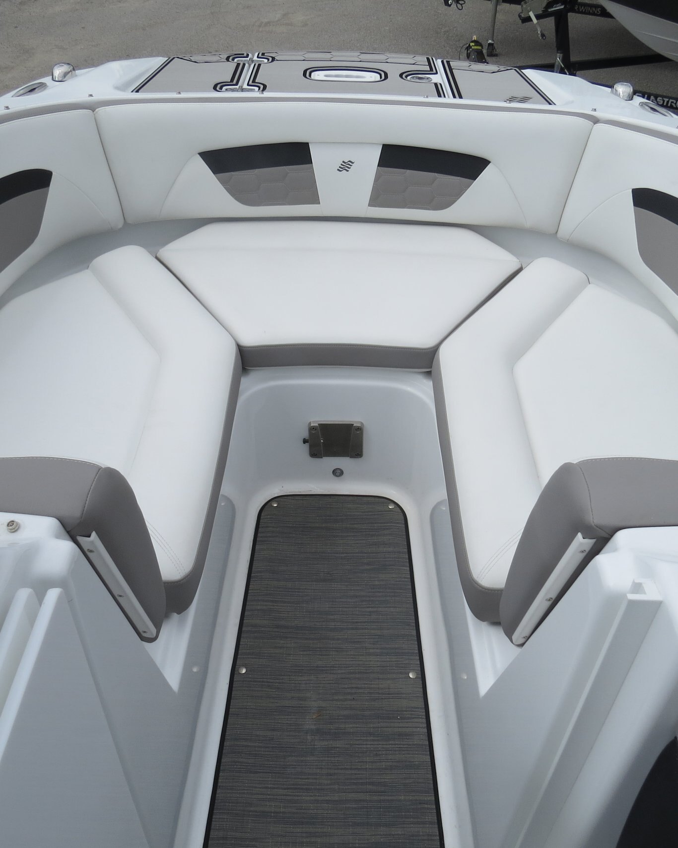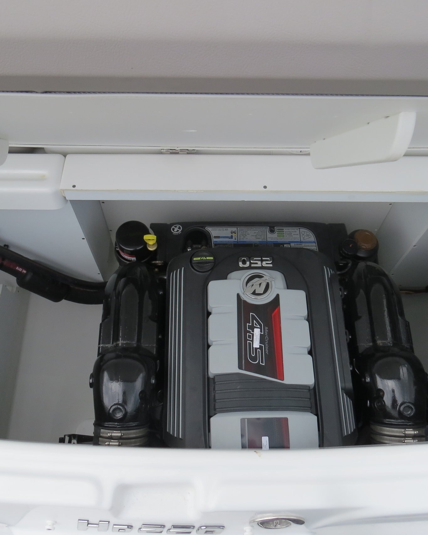 Mercruiser 4.5L/B3 250HP, Cockpit Reed Flooring, Head Pumpout, Flip Up Bolsters, Stainless Steel Cleats, Walk Thru Doors, Bow Fill in Cushions, Garmin GPS, Sirius Radio, Wake Tower with Bimini,  and Custom Matching Four Winns Trailer